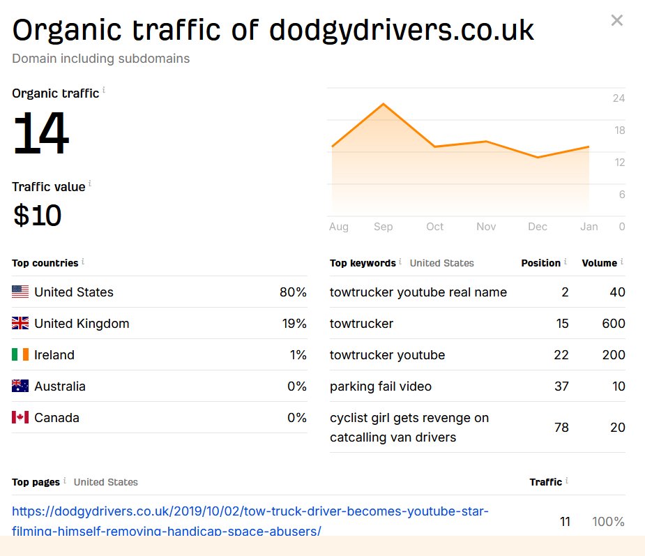 However, the company does not appear to have been very successful. Exact details of its finances are not available, but I consulted with industry experts about how content creators typically make money. They said that most content creators are paid on views and/or engagement. In this case, given that D Media was in the business of uploading videos, it's likely they were paid based on views. The organic traffic to the website appears to have been quite low. Admittedly, this is just a rough analysis but the analysis indicates it was probably a low-quality website with few hits. Although the figures are from this year, after speaking with marketing and SEO experts, it seems unlikely that the site would have generated enough ad traffic during the relevant time period to accrue a significant income, especially with an ambitious turnover figure of £84,000.